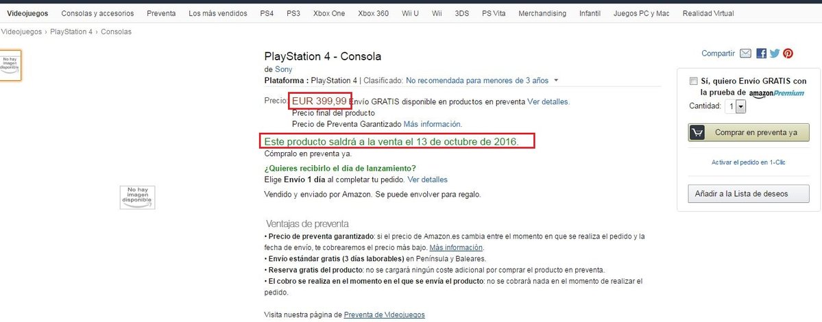 A través de los foros de NeoGAF los usuarios han descubierto que Amazon España ha listado un nuevo modelo de PlayStation 4 que saldrá a la venta el 13 de octubre.
