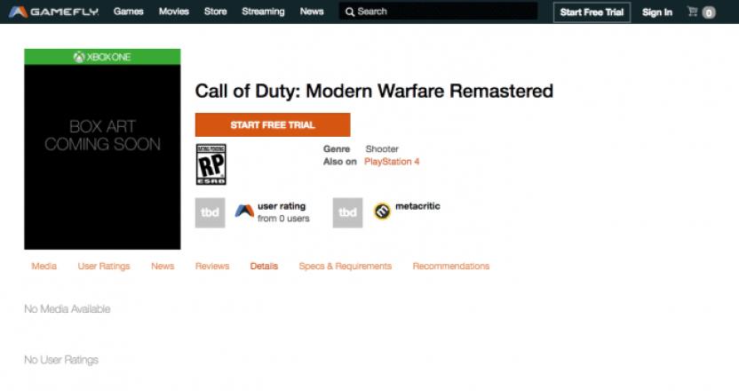 La tienda GameFly colocó en su página web el videojuego Call of Duty: Modern Warfare Remastered en su versión de PlayStation 4, la cual llegará el 20 de junio.