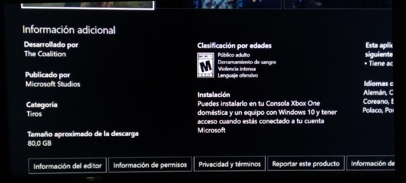 Microsoft Store y Xbox Store han revelado que Gears of War 4 podría pesar sobre 80 GB tanto en Xbox One como en PC.